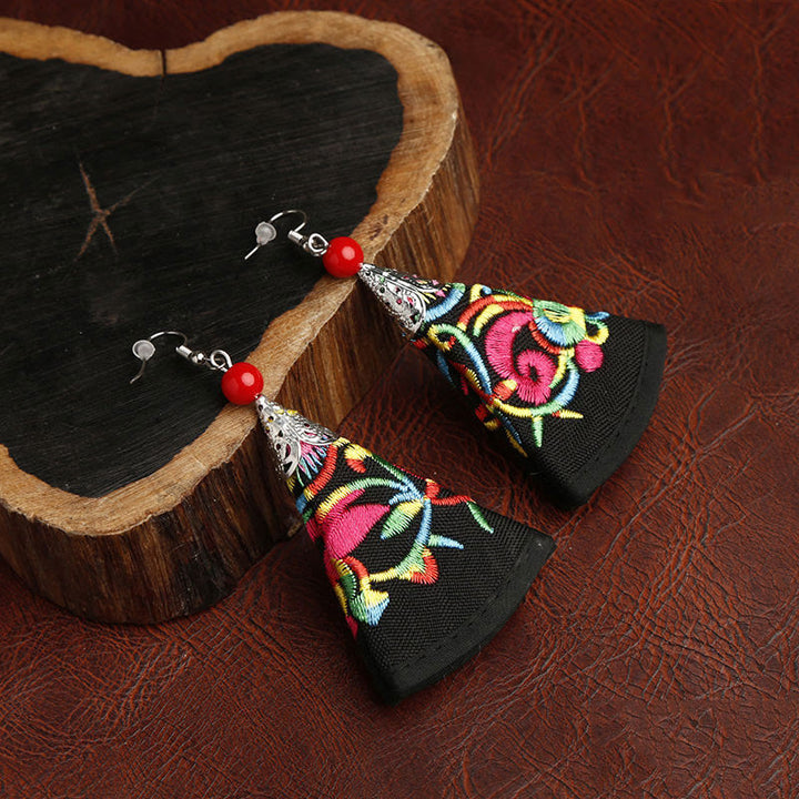 Buddha Stonesの手作り扇形イ族刺繍ハーモニーイヤリング