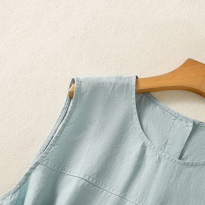 Buddha Stonesシンプル クルーネック ボタンデザイン レディース コットン ノースリーブ ベスト