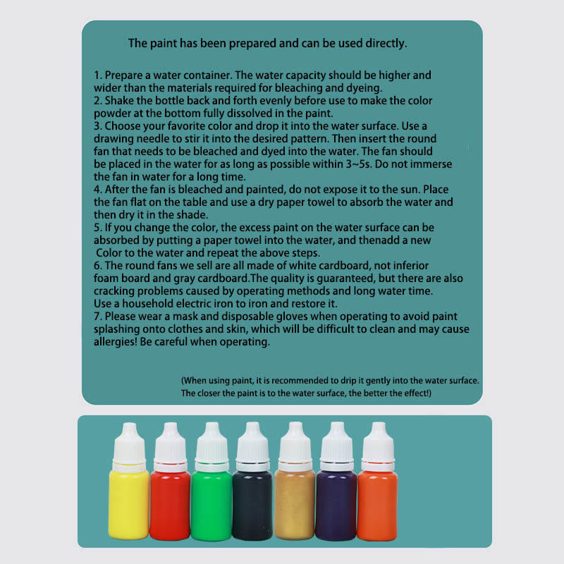 91個のペイント漂白セット:ファン20個ミックスパック(ランダムスタイル)、布製ファン*4(ランダムスタイル)、小さな空白の折りたたみ式ファン*1、大きな空白の折りたたみ式ファン*1、かき混ぜ棒*10(ランダムカラー)、12色のラッカーペイント、粘着テープ*3、使い捨て手袋*20、吊り下げクリップ*20(ランダムカラー)