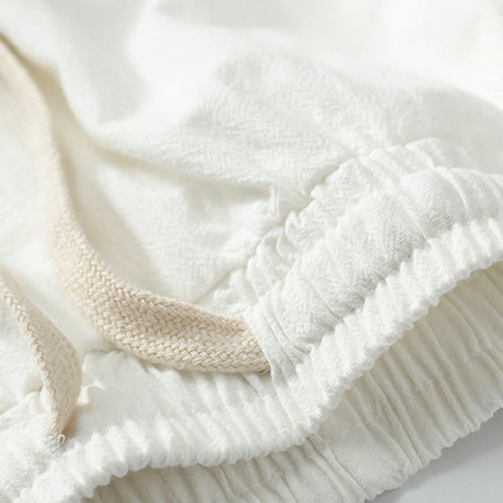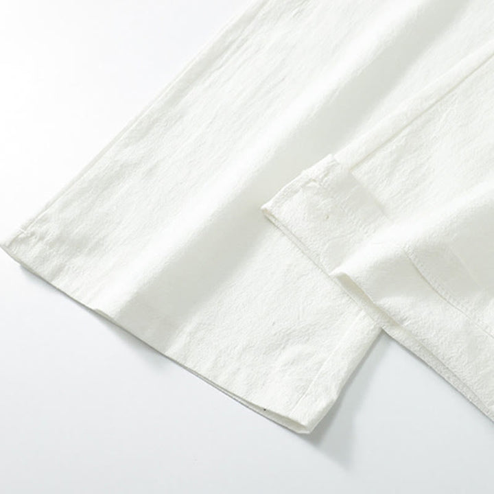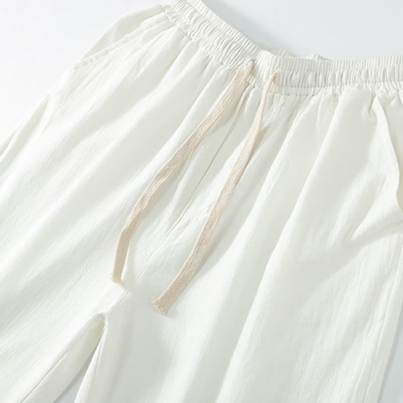 Buddha Stones無地コットンリネンカジュアルルーズメンズパンツ(ポケット付き)
