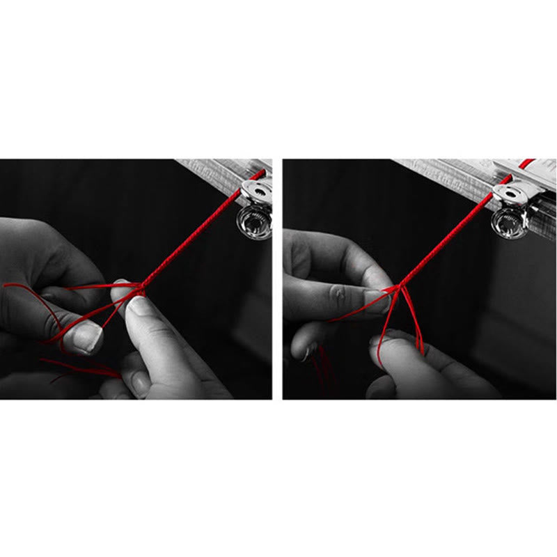 チベット密教の伝統では、儀式の際に手首に紐や紐を巻くことが一般的です。伝統的に、ラマ僧は紐を祝福し、結び目を結び、マントラを込めます。他の伝統と同様に、これらの赤い紐は幸運をもたらし、守護をもたらすと言われています。古代中国の伝説では、運命の赤い糸は目に見えず、人生が絡み合うすべての人々を結びつけるとされています。これは中国の縁結びの神である月老によって支配されており、主に結婚する運命にある二人の絆と関連付けられています。歴史を通して、そして様々な哲学において、赤い紐は守護、信仰、幸運、強さ、そして繋がりのために身に着けられてきました。