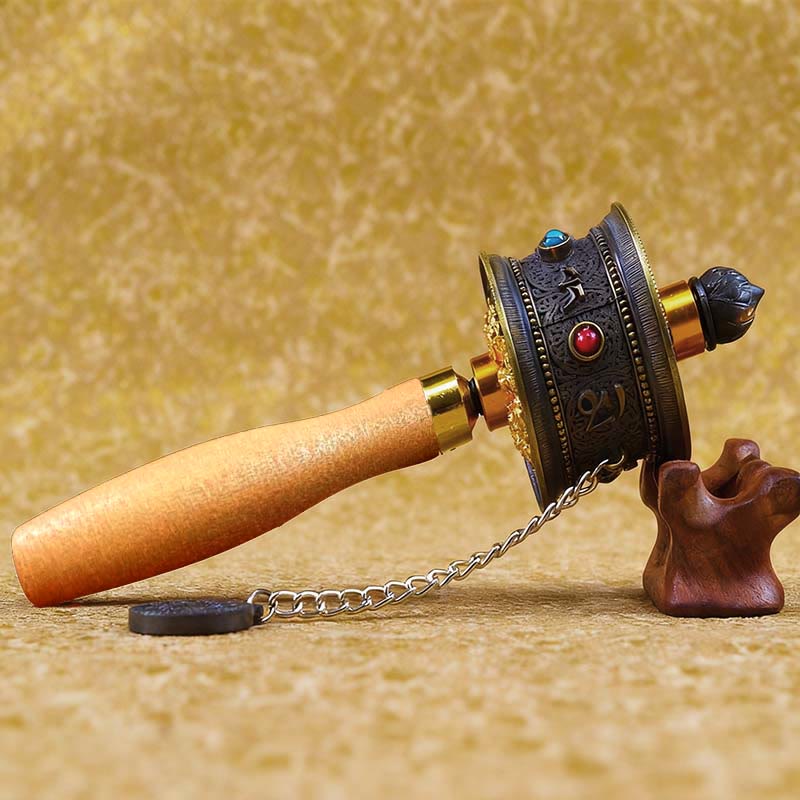 - 祈りの輪は、金属、木、石、革、または粗い綿で作られた軸の上にある円筒形の車輪(チベット語:འཁོར་ལོ།)です。