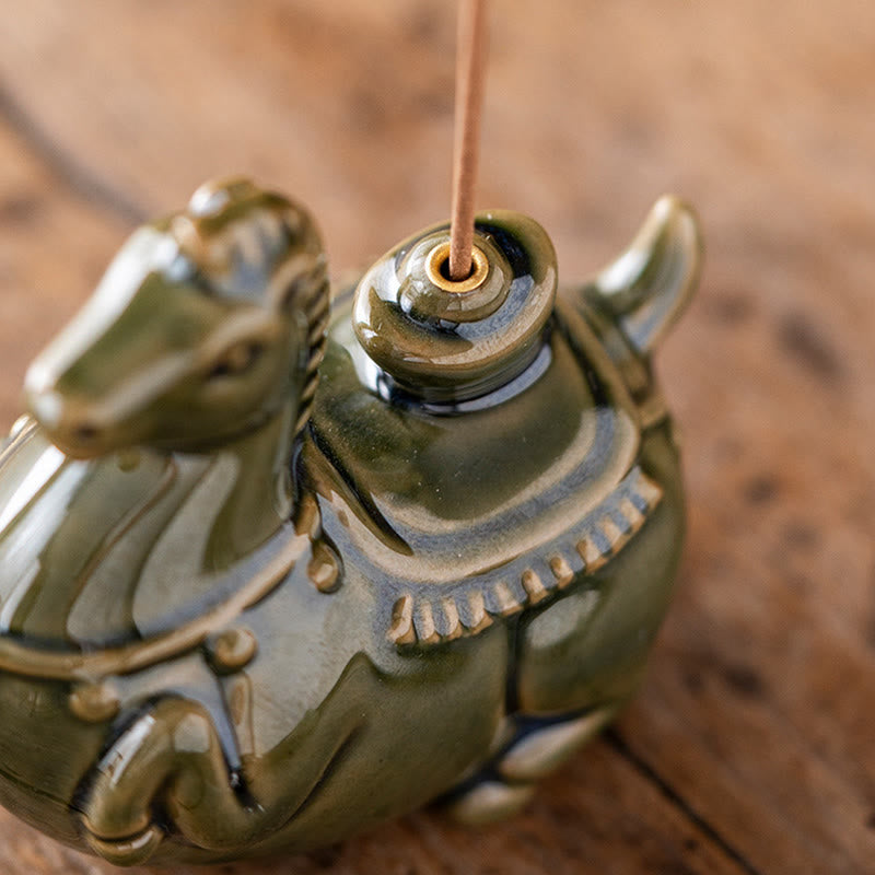 Buddha Stones午年 2026 新年 幸運のインゴット 香炉 - ダークオリーブグリーンホース(7.6×4.1×6.9cm) - image 0