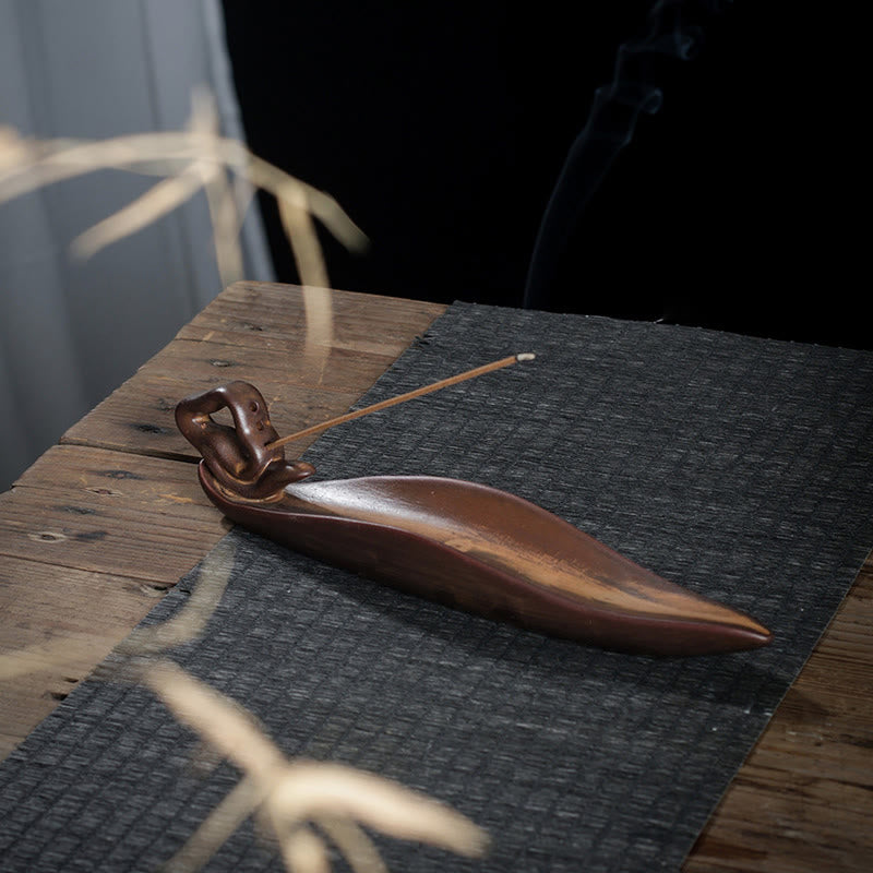 Buddha Stones小型ボート 蝉 家の装飾 香炉 - 孤独なボートからの釣り(25×5.5×5.5cm) - image 0