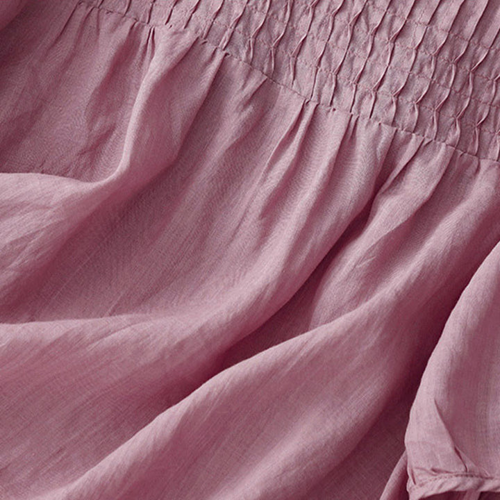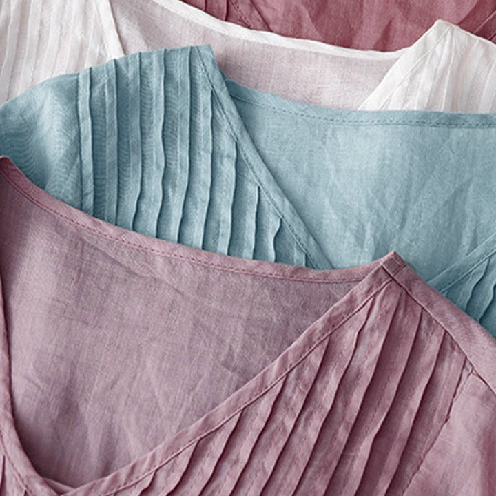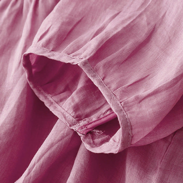 Buddha Stonesカジュアル 無地 ゆったり レディース Vネックデザイン 半袖 コットンシャツ - ペールバイオレットレッド - US12、 UK/AU16、 EU44 (2XL) - image 18