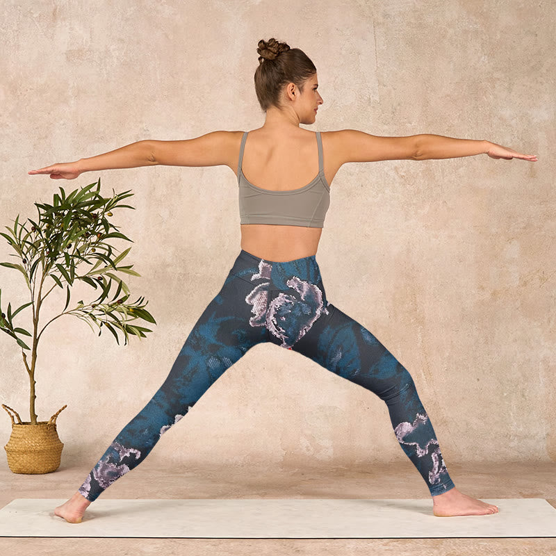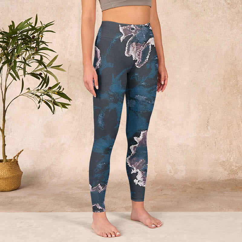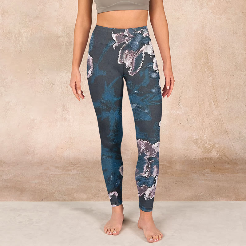 - デザインインスピレーション:スチールブルーシルバーの花々があしらわれたレギンスは、優雅さと静けさを象徴し、自然界の花のモチーフの美しさと力強さを反映しています。このデザインは、静寂と洗練さを想起させ、自然界とつながる洗練された美意識を重視する方にぴったりです。