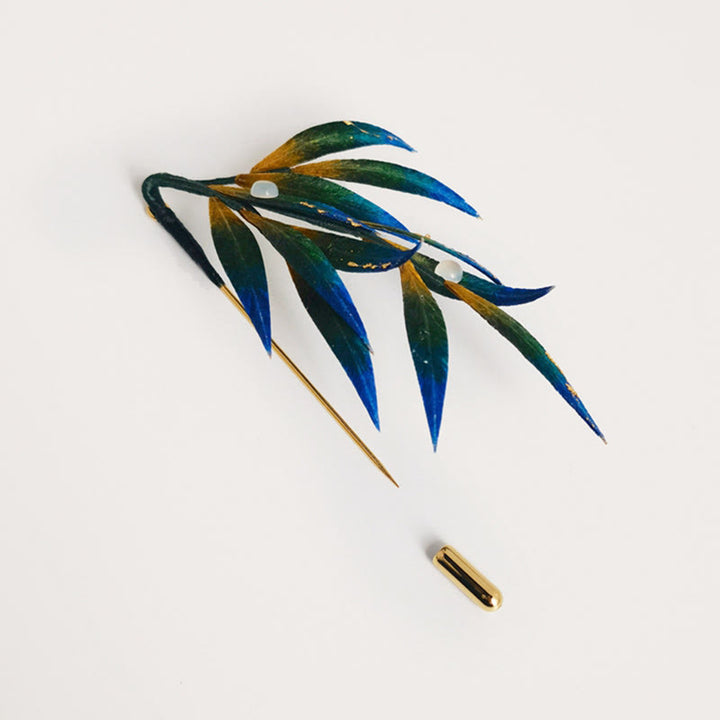 • 自然の表現:シルクで作られた葉は、自然との深いつながりを表現しています。葉は成長、再生、そして生命の循環を象徴します。葉の様々な色は、様々な季節や人生の段階を表し、デザイン全体に深みを与えています。