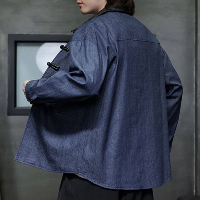 Buddha Stonesメンズ フロッグボタン コットン 長袖シャツ ポケット付き