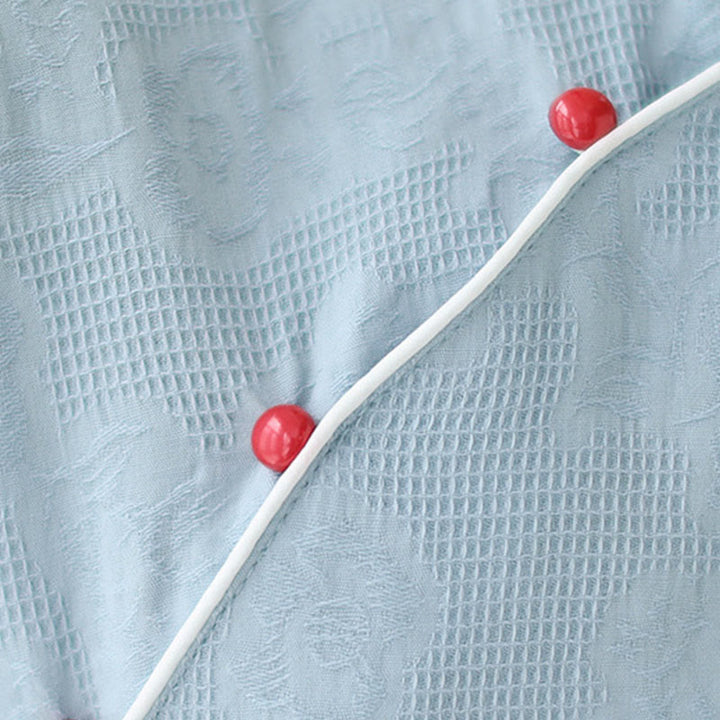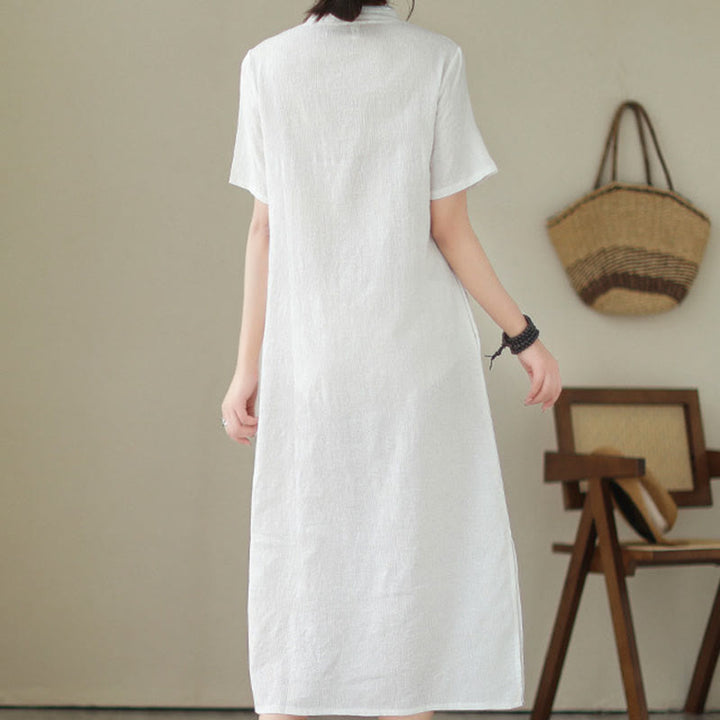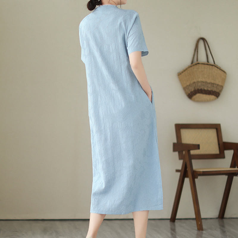 Buddha Stonesの純色半袖ジャカード中国チャイナドレス、ポケット付き