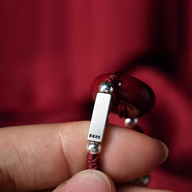 Buddha Stones 925スターリングシルバー シナバー ピース平和のお守りチャームコネクション 編み込みストリングブレスレット - image 0