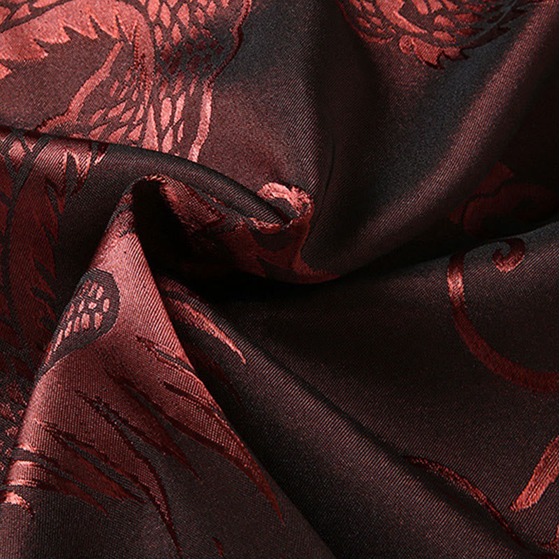 Buddha Stones唐装男性漢服中国龍伝統衣装カンフーシャツ制服長袖コートトップスとパンツ衣類メンズセット - ワインレッド - US/UK/AU42、 EU52 (3XL) - image 14