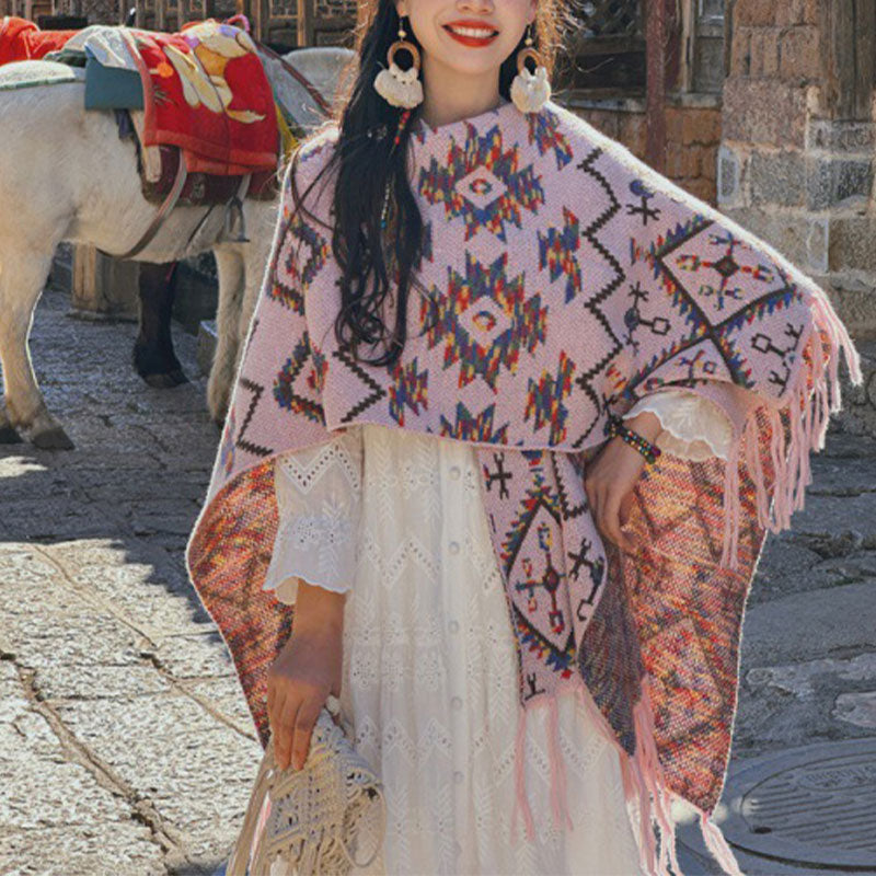 Buddha Stonesチベットショール ストライプ幾何学模様 冬用 心地よい旅行用ニットスカーフ ラップ