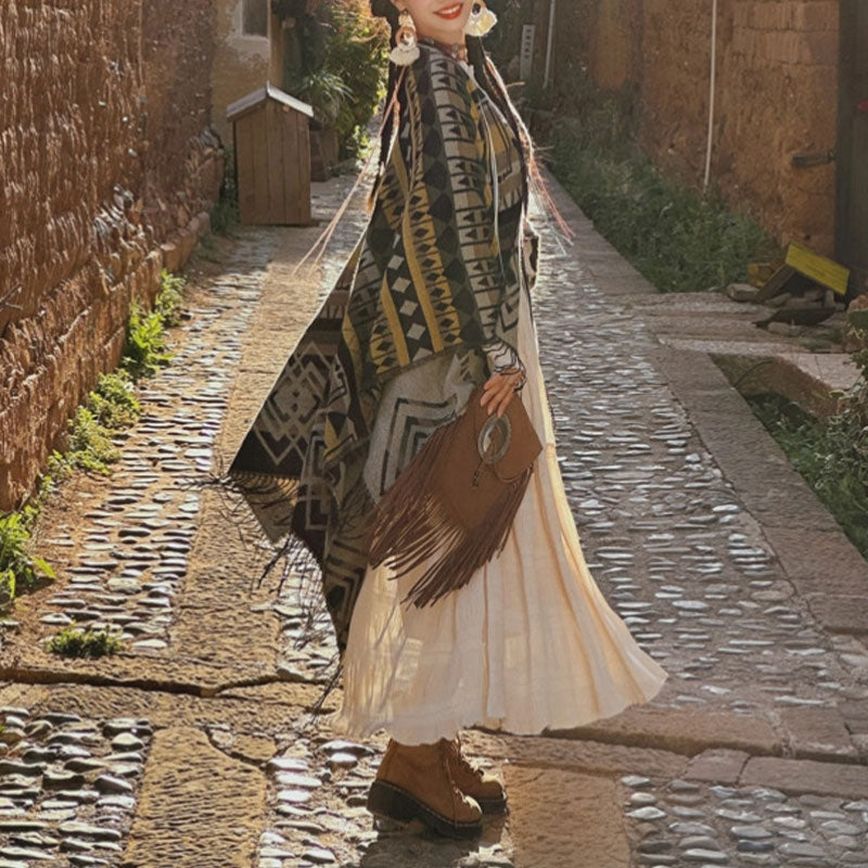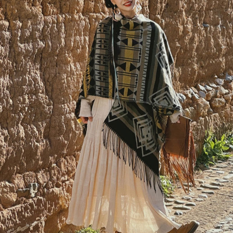 Buddha Stonesの幾何学模様タッセルスカーフラップは、スタイルとスピリチュアリティの融合です。タッセルで飾られたこの冬にぴったりの心地よいトラベルラップは、快適さと精神的な繋がりを融合させています。幾何学模様は生命の繋がりを象徴し、温かさと生命の一体感を求める方にとって理想的なアクセサリーです。