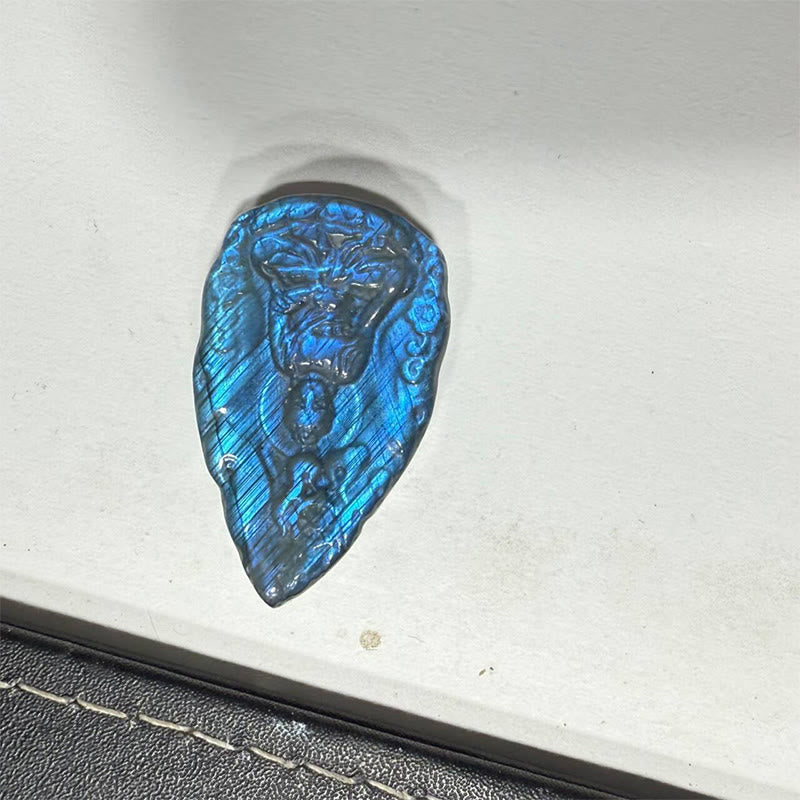 Buddha Stones 彫刻された仏像天然ラブラドライトティアドロップ型置物治癒像ホームデコレーション - image 10