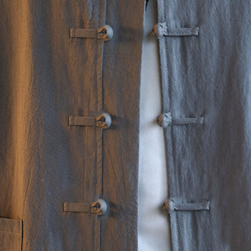 Buddha Stones 2点セット 禅唐装 メンズ カエルボタン 長袖 シャツ パンツ セット ポケット付き