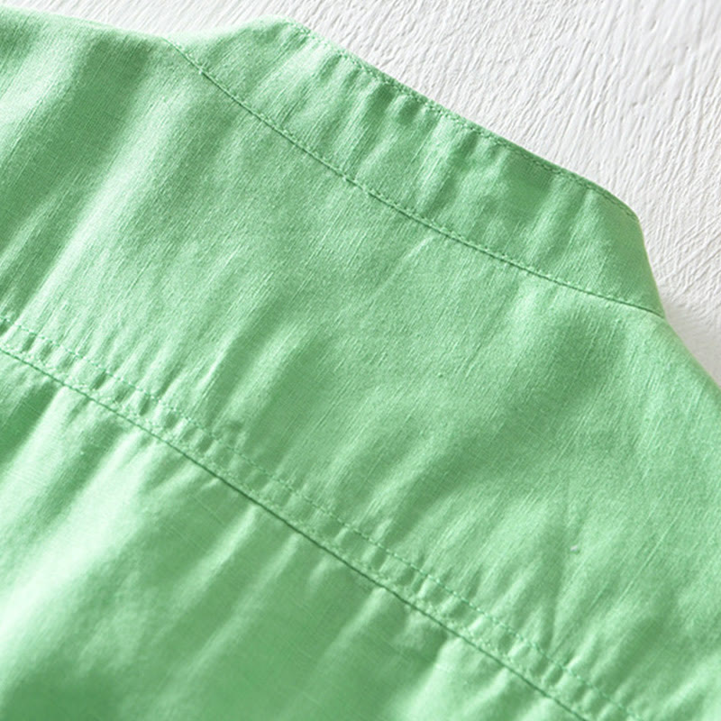 Buddha Stones無地ハーフボタンデザインスタンドカラーメンズ半袖コットンリネンシャツ - ミディアムスプリンググリーン - US/UK/AU46、 EU56 (5XL) - image 13