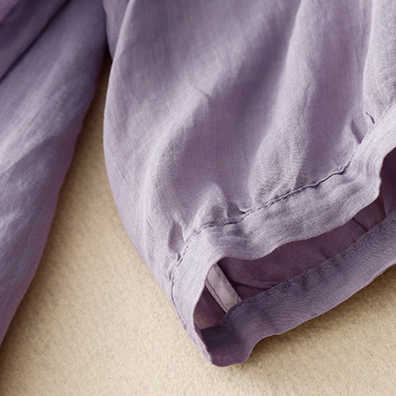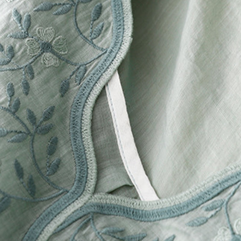 Buddha Stones夏 カジュアル 刺繍 花 レディース Vネック デザイン 半袖 アクリル Tシャツ
