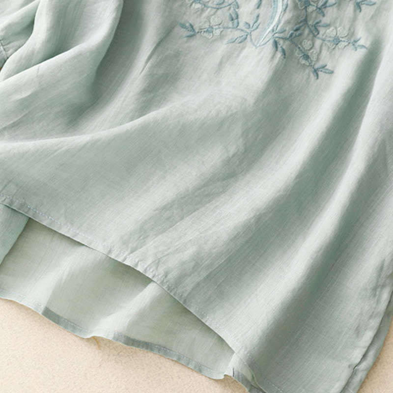 Buddha Stones夏 カジュアル 刺繍 花 レディース Vネック デザイン 半袖 アクリル Tシャツ - 梅 - US8-10,UK/AU12-14,EU40-42 (2XL) - image 0