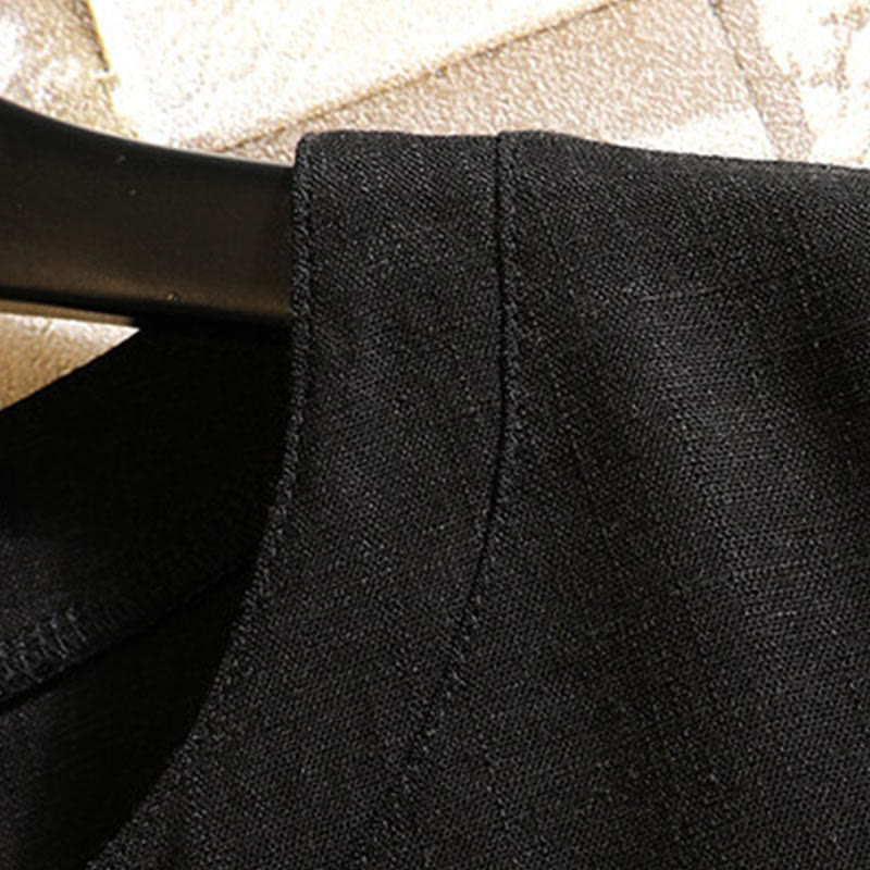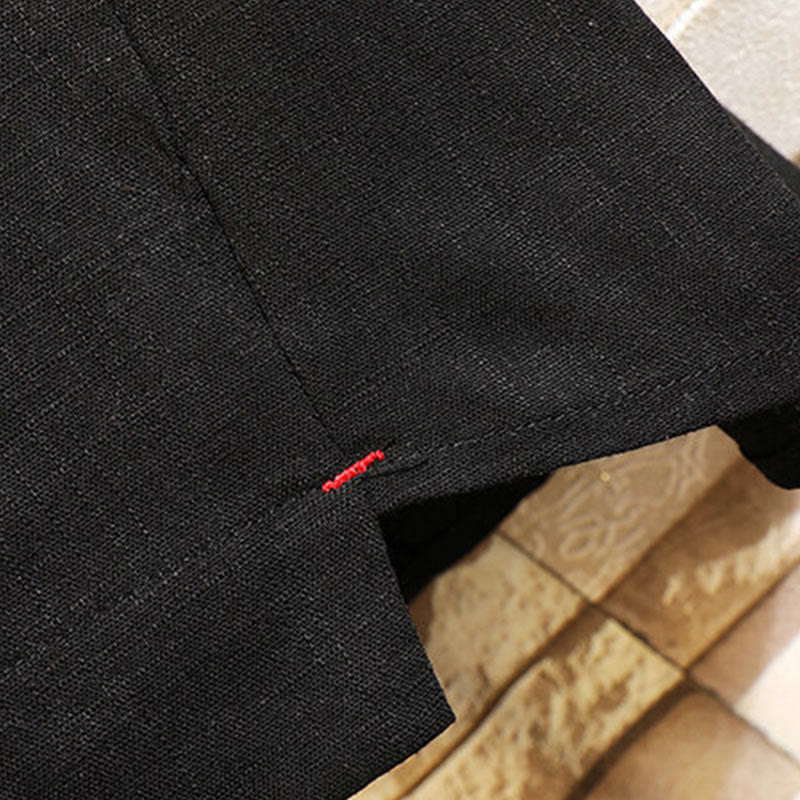 Buddha Stones夏 中国風 カエルボタン メンズ 無地 ボタン 半袖 コットン リネン シャツ - 黒 - US/UK/AU46、 EU56 (5XL) - image 1