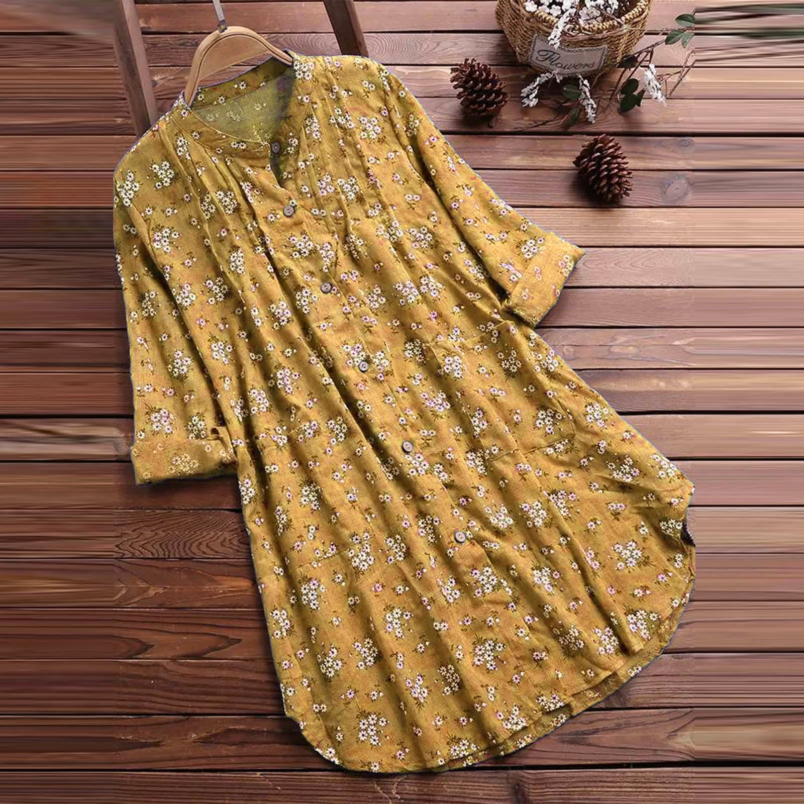 Buddha Stones柄 ボタン 長袖 コットン レディース シャツ - ゴールデンロッド - US8-10,UK/AU12-14,EU40-42 (2XL) - image 4