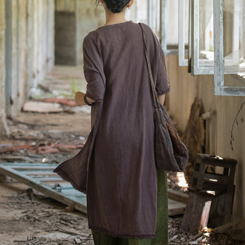 ミドル丈のラミーリネンドレスは、半袖と裾のスリットデザインで、エレガントさと快適さを兼ね備えています。上質なラミーリネンを使用し、通気性とリラックス感のある着心地で、どんなシーンにもぴったりです。ミニマルなスタイルが自然な美しさと動きやすさを際立たせ、シンプルさと優雅さをワードローブに求める方にぴったりの一着です。💕