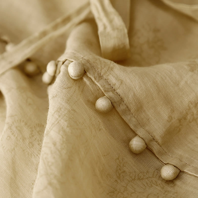 Buddha Stones夏 Vネック レースアップ 半袖 コットンリネン レディース ミディドレス ポケット付き - image 1
