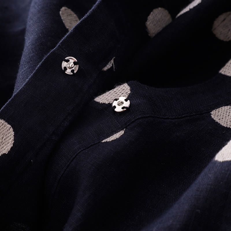 Buddha Stones水玉模様 Vネック レースアップ コットンリネン レディース ミディドレス ポケット付き - 海軍 - US8-10,UK/AU12-14,EU40-42 (2XL) - image 0