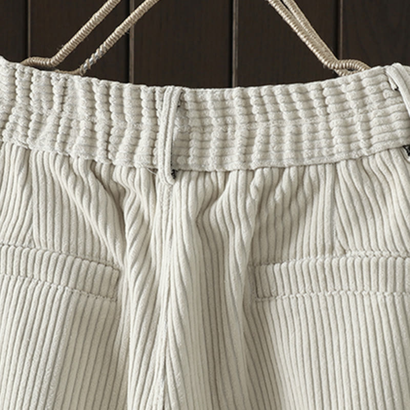 - シンプルなデザイン: このパンツは伸縮性のあるウエストバンドのデザイン要素が特徴です。