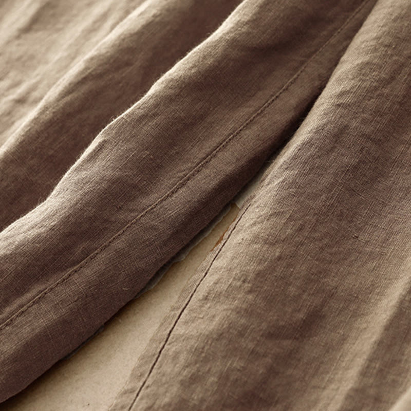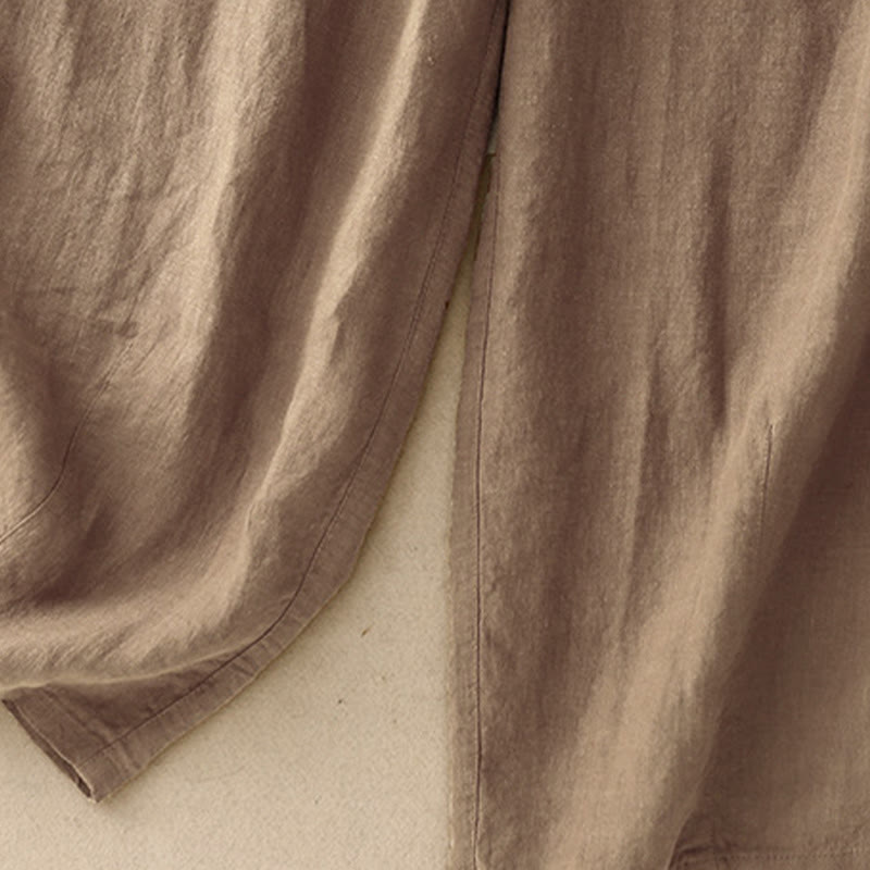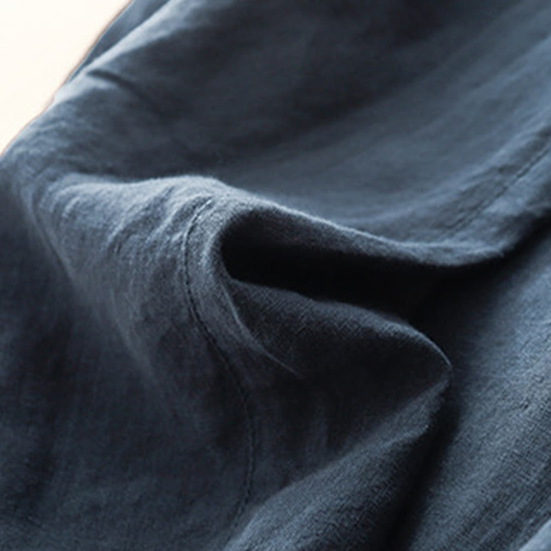 Buddha Stones夏 無地 カジュアル 7-8丈 レースアップ レディース コットンリネン ハーレムパンツ ポケット付き - image 1