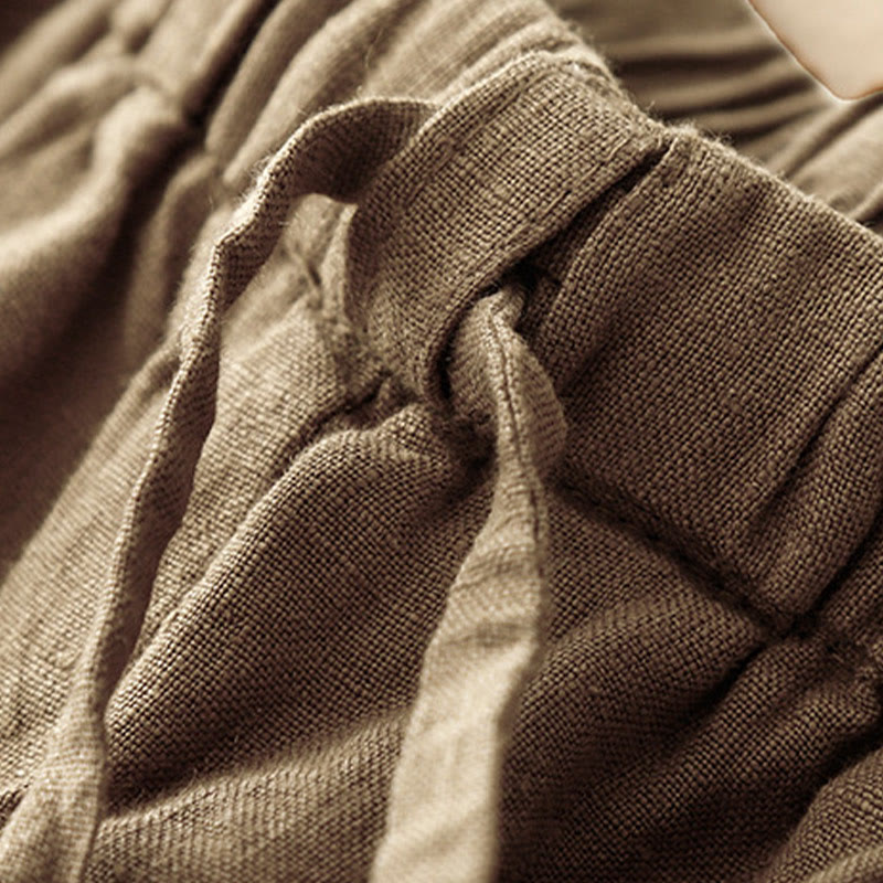 Buddha Stones夏 無地 カジュアル 7-8丈 レースアップ レディース コットンリネン ハーレムパンツ ポケット付き