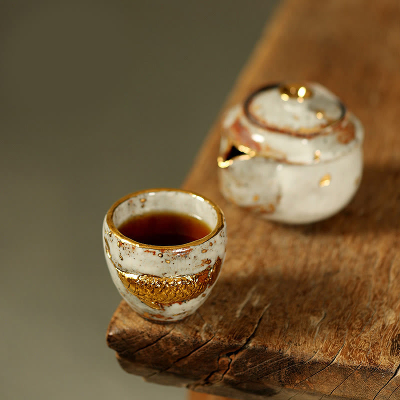 Buddha Stones手作りゴールデンアロワナ鯉セラミックティーカップカンフーティーカップティーポット