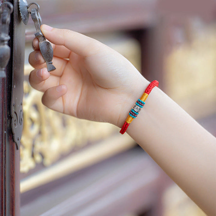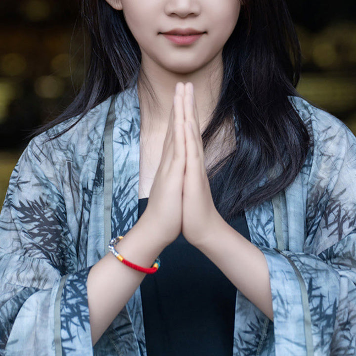 チベット密教の伝統では、儀式の際に手首に紐や紐を巻くことが一般的です。伝統的に、ラマ僧は紐を祝福し、結び目を作り、マントラを込めます。他の伝統と同様に、これらの赤い紐は幸運をもたらし、守護をもたらすと言われています。古代中国の伝説では、運命の赤い糸は目に見えないもので、人生が絡み合うすべての人々を結びつけます。これは中国の縁結びの神である月老によって支配されており、結婚する運命にある二人の絆と深く結びついています。歴史を通して、そして様々な哲学において、赤い紐は守護、信仰、幸運、強さ、そして繋がりのために身に着けられてきました。