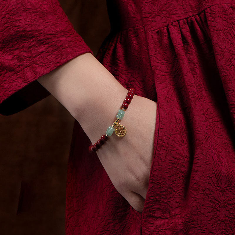 幸運を呼ぶブレスレットで、シナバーとグリーンアベンチュリンのパワーをご体験ください。熟練の職人が高品質な素材を用いて手作りしたこのユニセックスブレスレットは、スタイリッシュなだけでなく、ポジティブな意味も持ち合わせています。シナバーは心を落ち着かせ、知恵を高め、邪悪な霊を遠ざける効果があり、グリーンアベンチュリンは幸運を引き寄せ、エネルギーのバランスを整え、魂を癒します。上質な伸縮性のある紐と6mmから12mmのビーズを組み合わせたこのブレスレットは、手首周り14~20cmの方に最適です。天然素材を使用しているため、多少の凹凸や色の違いが生じる場合がございますのでご了承ください。