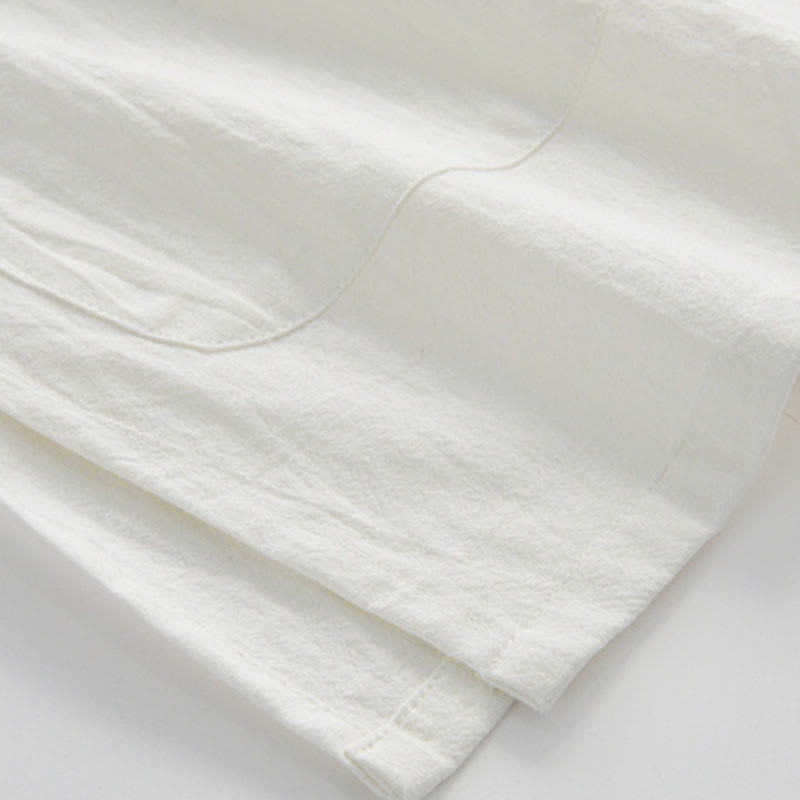 Buddha Stones中国風 カエルボタン 唐装 メンズ 半袖シャツ コットンリネン ポケット付き - 白 - US/UK/AU44、 EU54 (4XL) - image 0