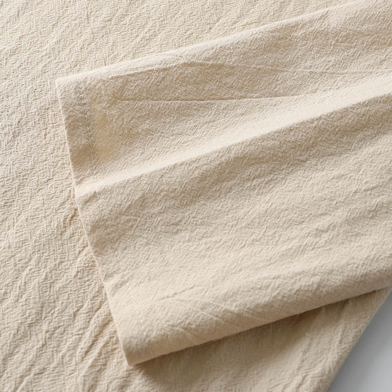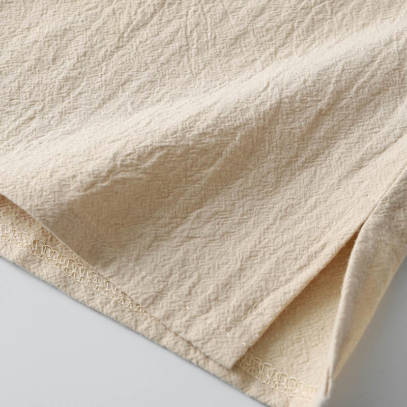 Buddha Stones無地長袖ボタンシャツコットンリネンメンズ服