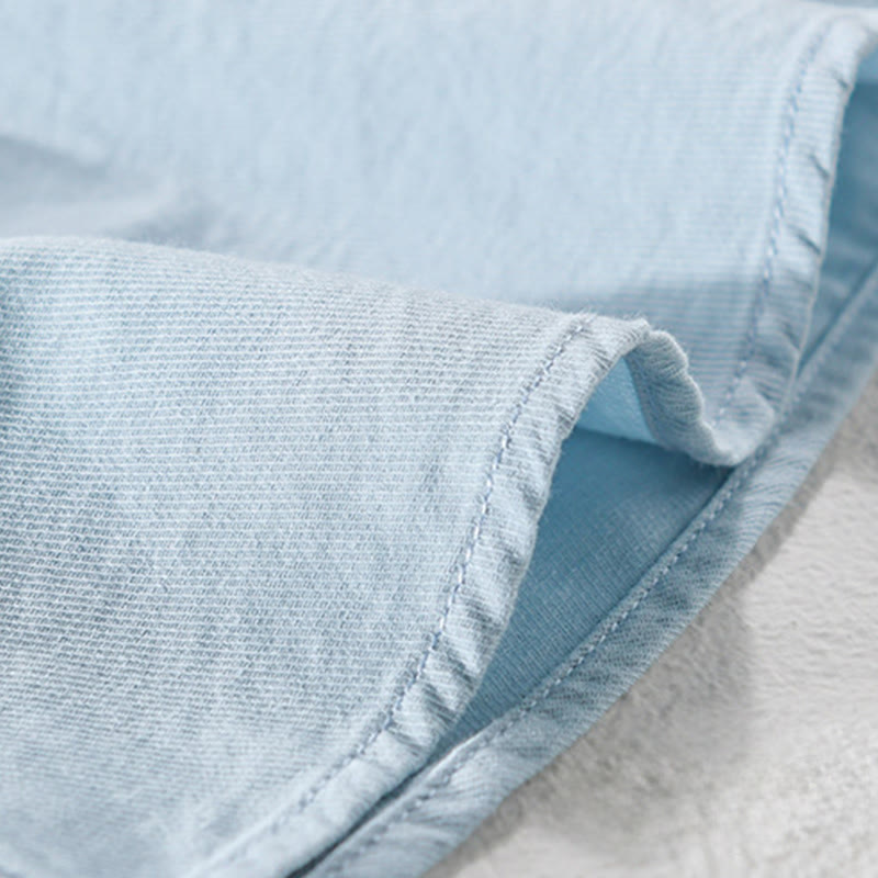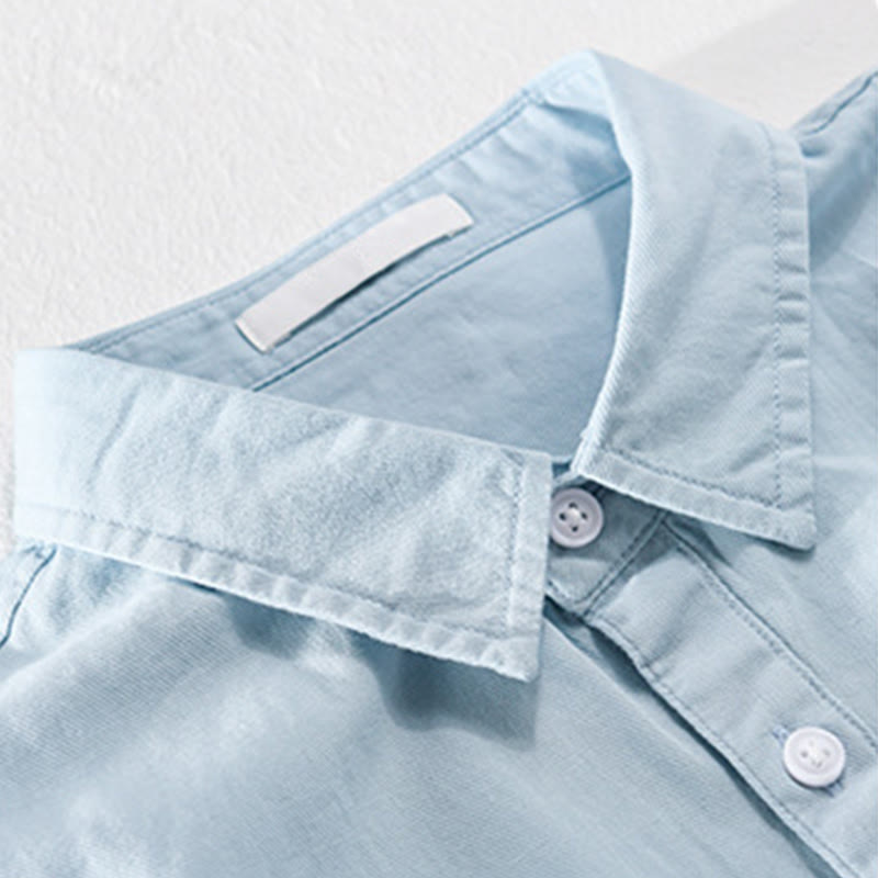 Buddha Stones 夏用ボタンダウンシャツ 装飾ポケット2つ付き メンズ 半袖 コットンシャツ - パウダーブルー - US/UK/AU40、EU50(3XL) - image 0