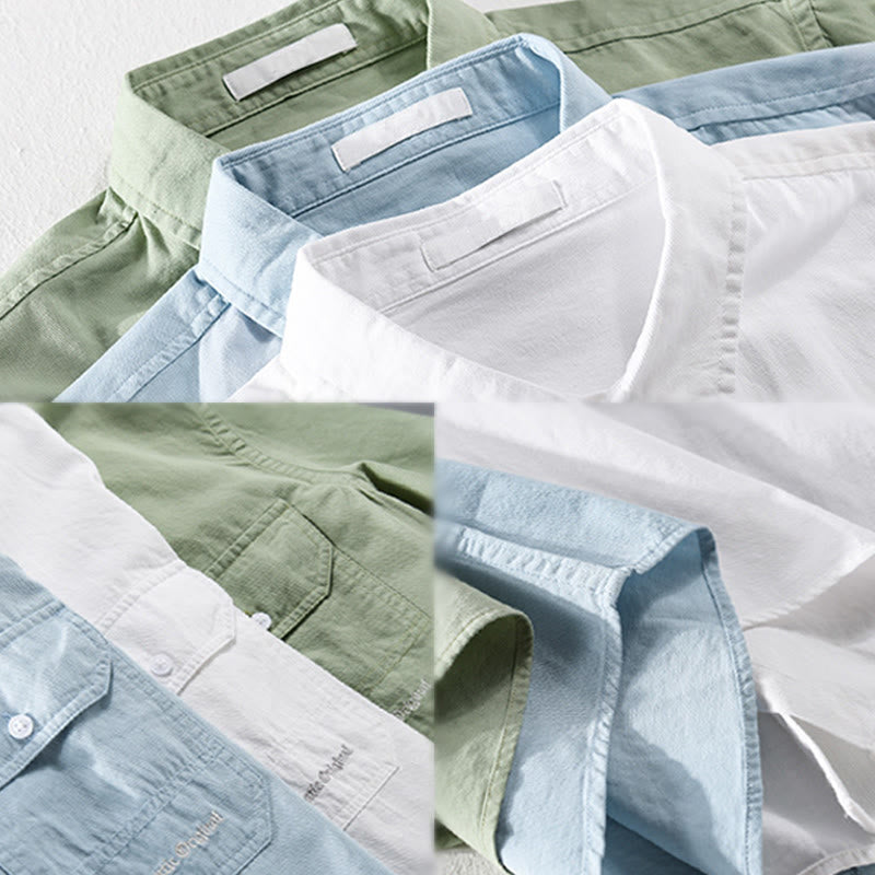 Buddha Stones 夏用ボタンダウンシャツ 装飾ポケット2つ付き メンズ 半袖 コットンシャツ