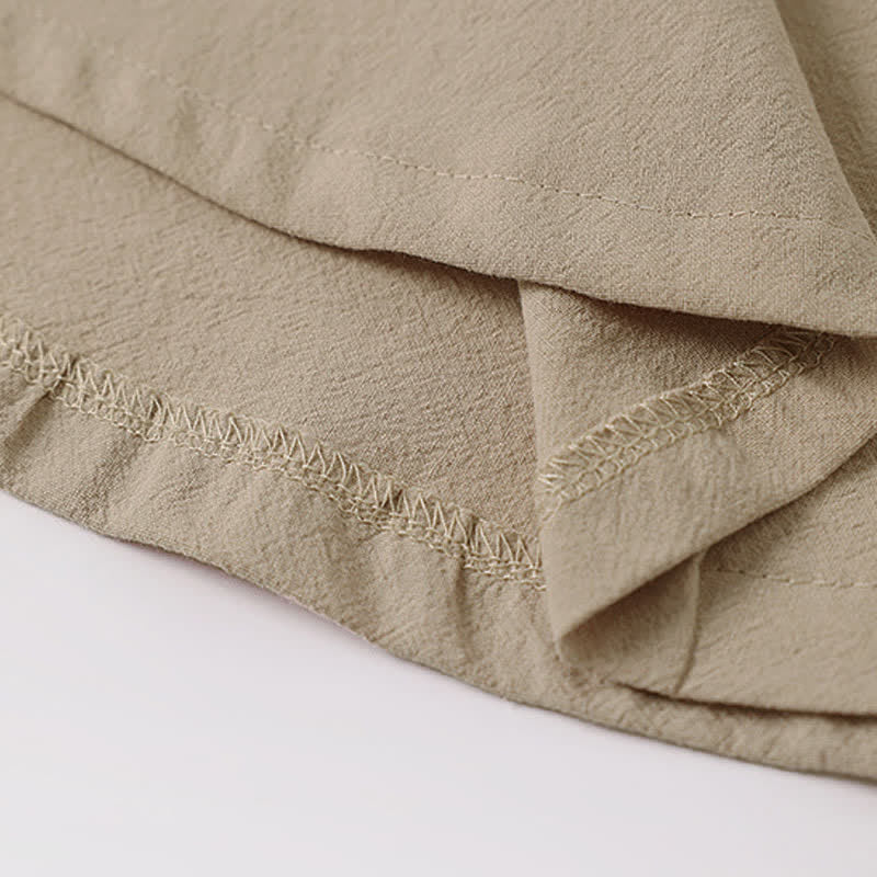 Buddha Stones 夏用刺繍入り半袖ノッチドカラーメンズコットンリネンTシャツ - タン - 米国/UK/AU56、EU66(9XL) - image 4