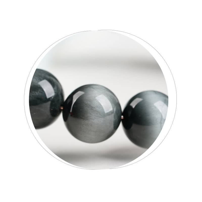 7Aイーグルアイストーンは、より洗練されたグレーブルーのトーンと、より強く凝縮されたイーグルアイシャトヤンシーが特徴です。シルキーな光沢がより際立ち、色はよりクリーンで均一に見え、表面には目立たない石紋が見られます。5Aと比較すると、サテンのような仕上がりと、より奥行きのある視覚的な深みにより、より洗練されたエレガントな外観を実現しています。