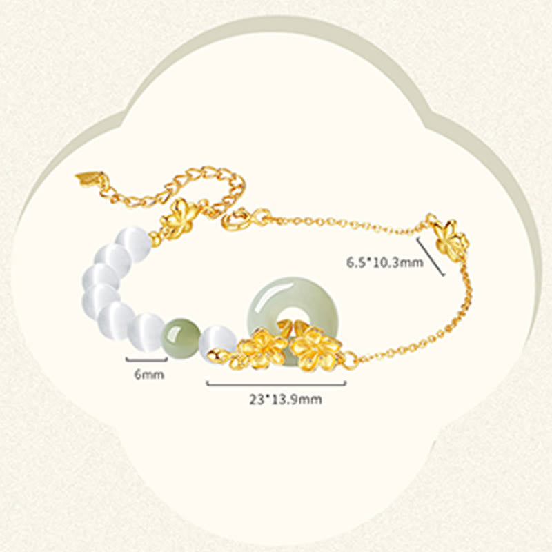 Buddha Stonesクリソベリル 和田翡翠 999スターリングシルバー ラブブレスレット - クリソベリル和田翡翠 ゴールデン 999 スターリングシルバー (手首周り: 14-19cm) - image 0