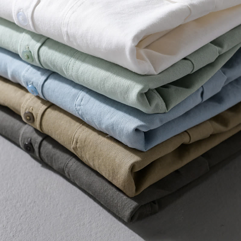 Buddha Stonesカジュアル 無地 ボタンダウン 装飾ポケット メンズ スタンドカラー 長袖 コットンシャツ - 甘露 - US/UK/AU42、 EU52 (3XL) - image 0