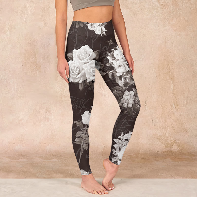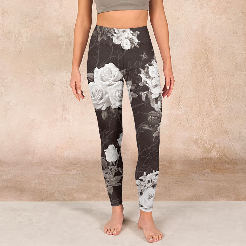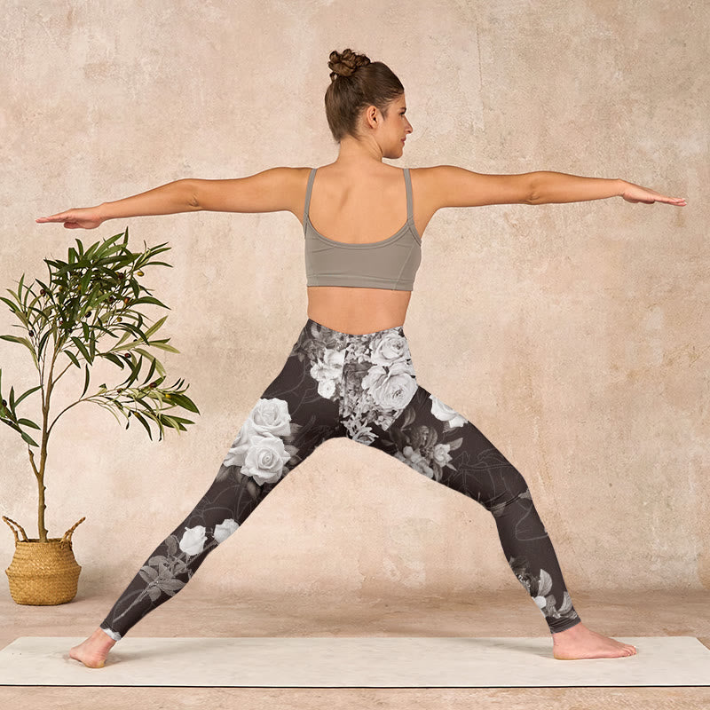 • デザインインスピレーション:このレギンスには、優雅さ、バランス、そして新たな始まりを象徴するグレーとホワイトのバラがデザインされています。グレーのバラは中立性と落ち着きを、ホワイトのバラは純粋さと無垢さを象徴し、優雅さと新たな始まりを体現する洗練されたパターンを生み出しています。