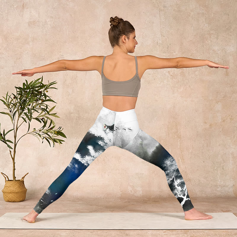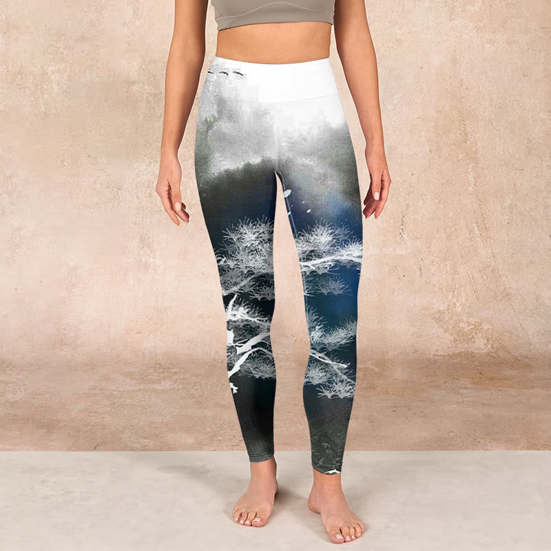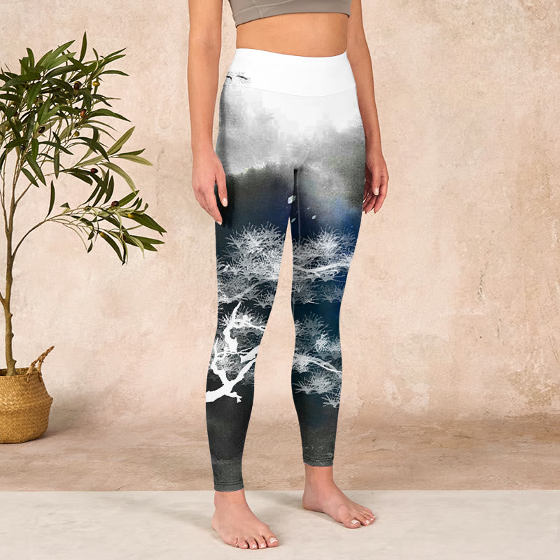 - デザインインスピレーション:このレギンスには、水墨画で描かれた松の木がデザインされており、回復力、静寂、そして自然の永遠の美しさを象徴しています。松の木は長寿と揺るぎない意志を象徴し、水墨画のスタイルは芸術的表現と文化遺産への畏敬の念を喚起し、伝統的な山水画に見られる静謐な調和を称えています。