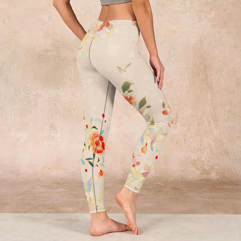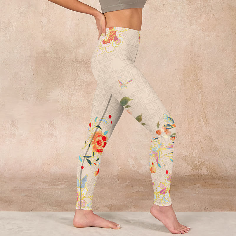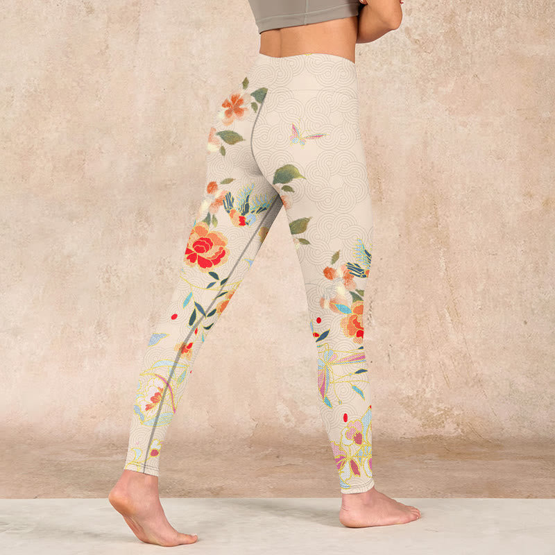 • デザインインスピレーション:蝶と牡丹​​の花をあしらったこのレギンスは、優雅さと華やかさが完璧に融合しています。牡丹は「花の王」と呼ばれ、富と繁栄を象徴します。一方、蝶は自由と変化を象徴し、人生の美しさと俊敏さを伝えています。このレギンスは、魅力と活力の象徴となっています。