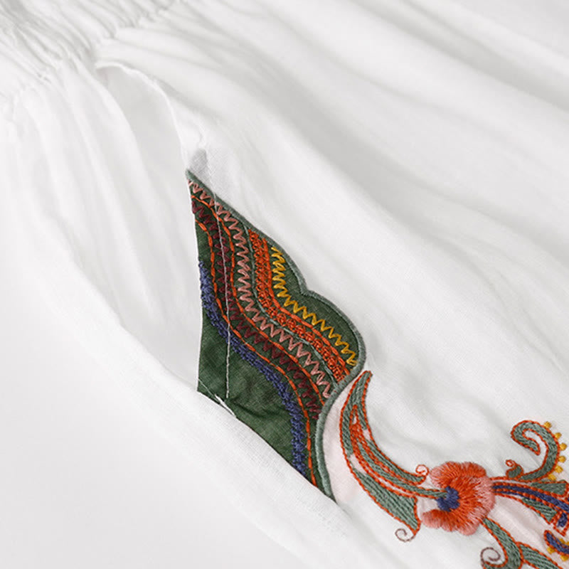- シンプルなデザイン: このパンツは伸縮性のあるウエストバンドと刺繍のデザイン要素が特徴です。