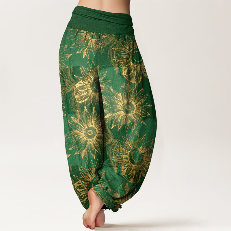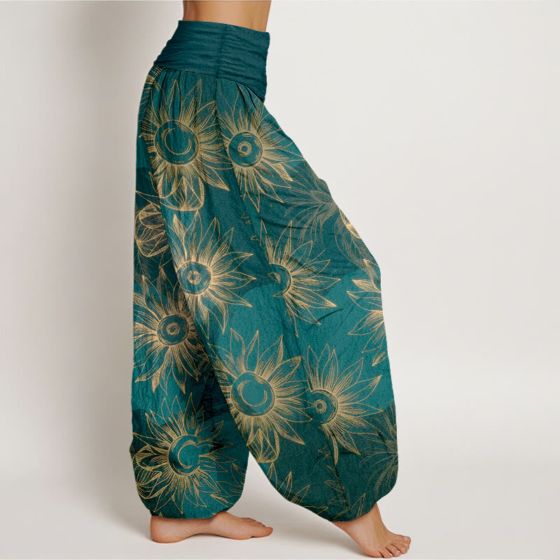 • デザイン:水彩画のような背景に、美と豊かさを象徴する花柄が描かれたハーレムパンツです。繊細なラインが、装飾的で芸術的な雰囲気を醸し出しています。