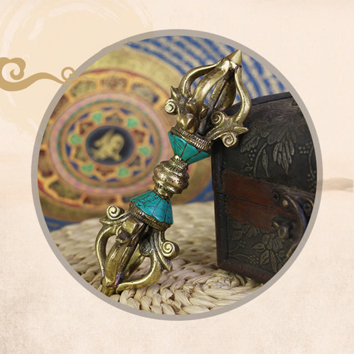 金剛杵は、チベットの仏教儀式で用いられる五叉の儀式用具です。金剛杵は、ダイヤモンド(不滅)と雷(抗えない力)の特性を象徴しています。ダイヤモンドの特性の象徴として、金剛杵はダイヤモンドが最も硬い石であることから、不滅を意味します。雷の象徴として、金剛杵は抗えない力を表します。インドラ神がこの武器で無知な者を殺すことから、金剛杵は無知を切り裂くことを意味します。