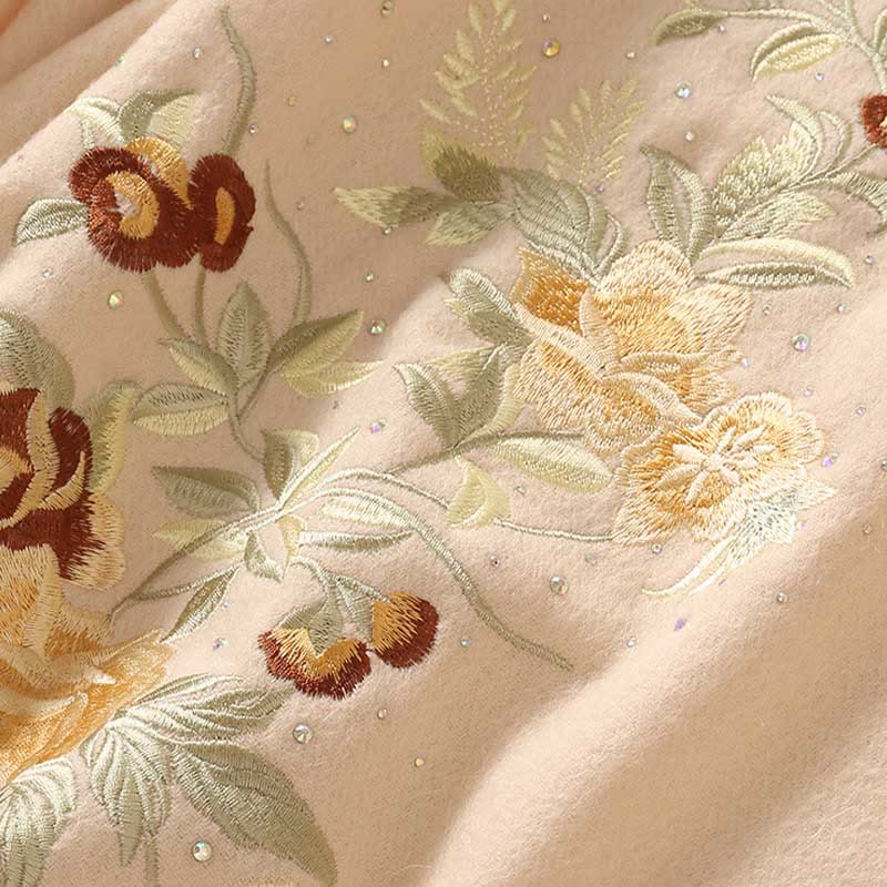 レッドフラワー・シルバーリーフ・ウールショールは、贅沢なウール生地に、繊細な赤い花の刺繍とシルバーリーフをあしらいました。タッセルが優雅な雰囲気を添えるこの心地よい冬のショールは、旅や瞑想に最適です。温かさと美しさを兼ね備えたこのショールは、調和とポジティブな気持ちを呼び起こします。繊細なデザインと柔らかな質感は、肌寒い日に自然との心地よい繋がりをもたらします。💕
