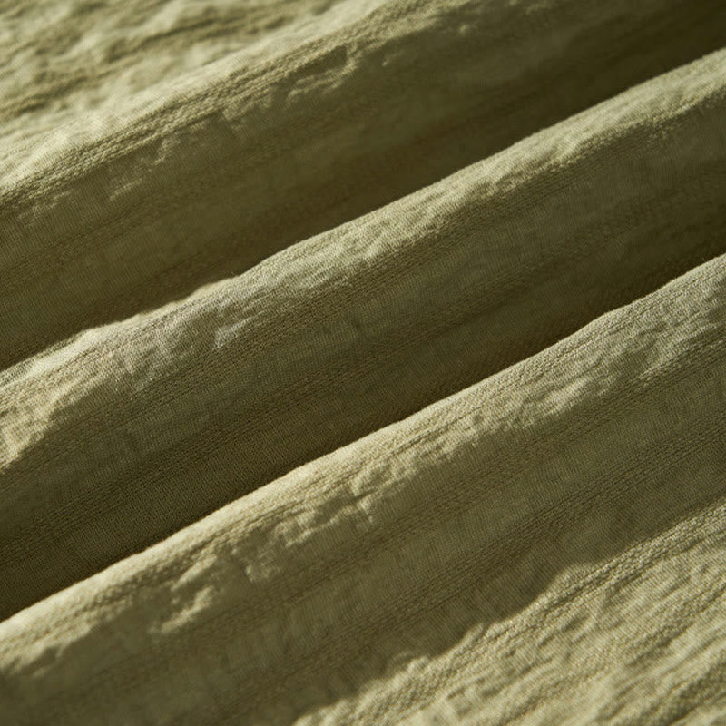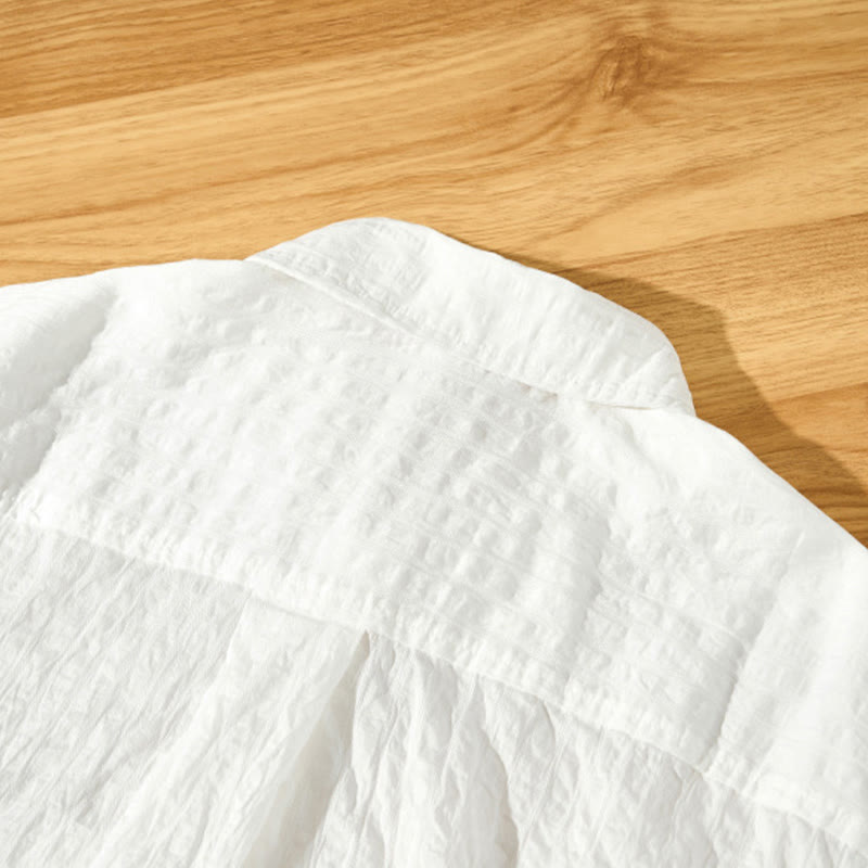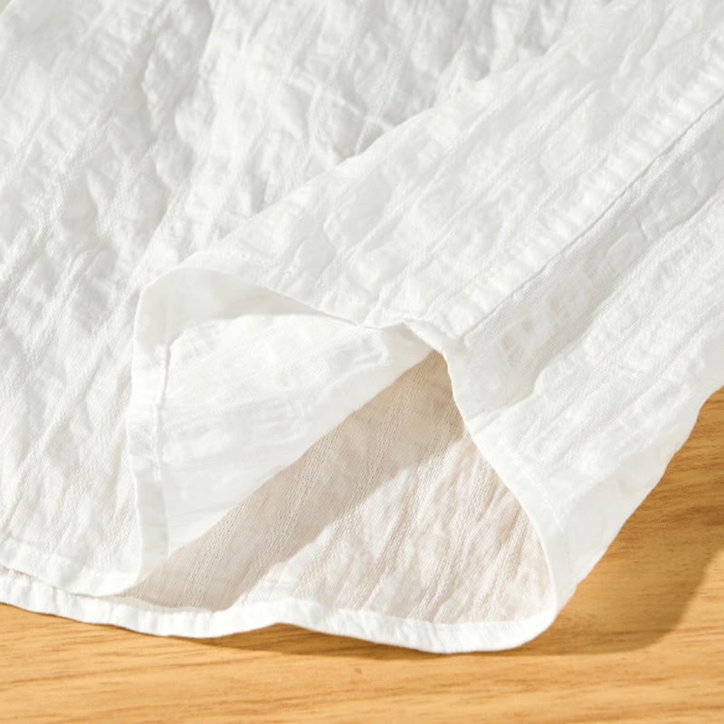 Buddha Stones夏用 無地 通気性 メンズ ボタン 半袖 テンセルシャツ