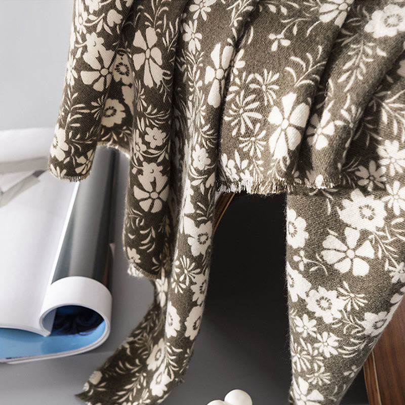 Buddha Stonesチベットショール フレッシュデイジープリント 秋冬 ソフト 暖かい 旅行用スカーフ ラップ - ダークカーキ 190*65cm - image 0